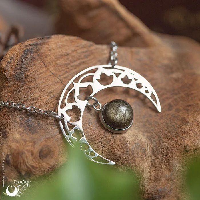 Inspiré de Sirona, déesse celte des eaux, de la guérison et du renouveau, ce collier en forme de croissant de lune évoque la féminité, les cycles naturels et la protection douce.